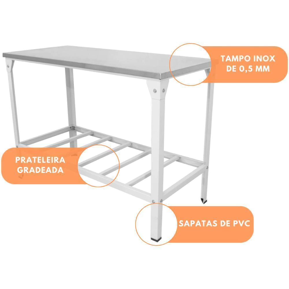 A Mesa Leve da INNAL com o seu tampo em inox é ideal para a manipulação de alimentos, além de possuir grade inferior que permite acomodar utensílios, tornando sua rotina na cozinha mais pratica.
