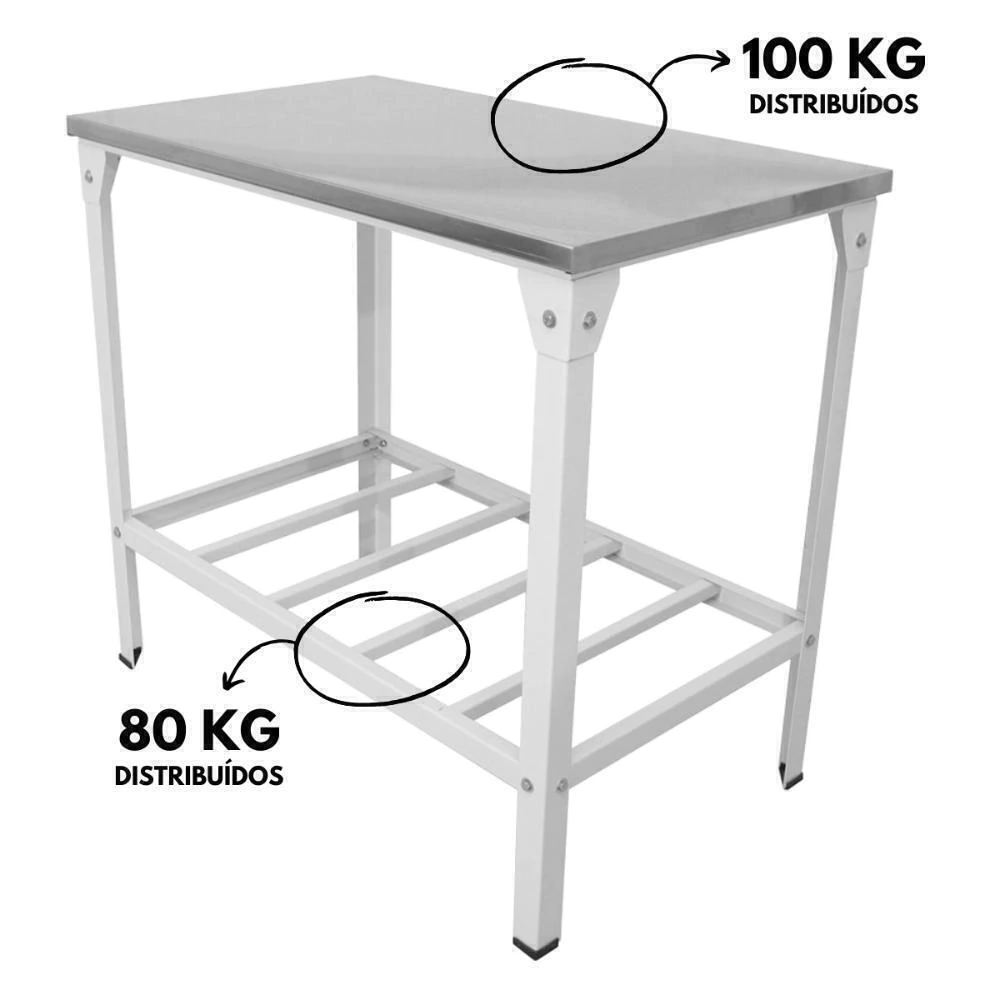 Capacidade do Tampo: aproximadamente 100 Kg distribuídos