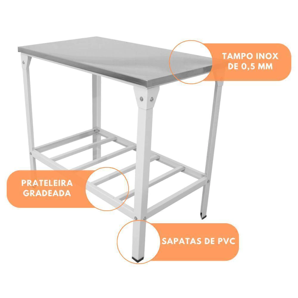 A Mesa Leve da INNAL com o seu tampo em inox é ideal para a manipulação de alimentos, além de possuir grade inferior que permite acomodar utensílios, tornando sua rotina na cozinha mais pratica.
