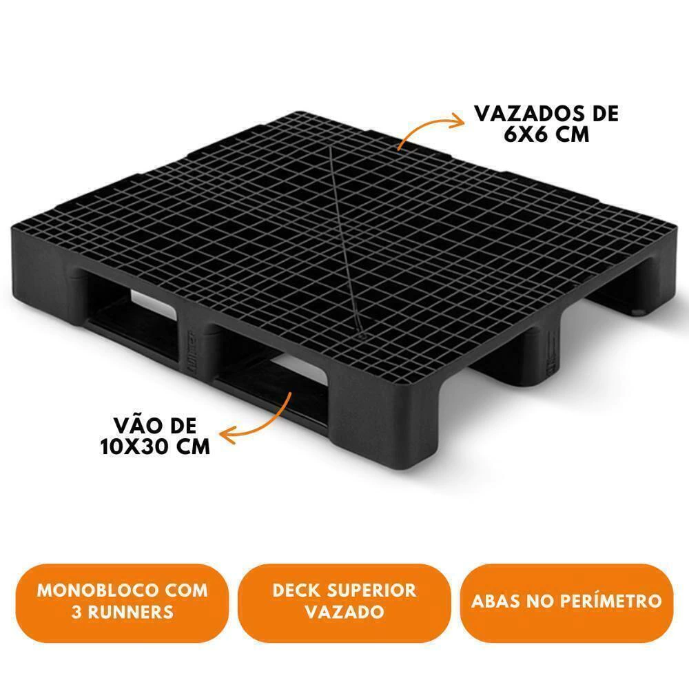 Pallet Vazado De Plástico 1,00x1,20m Monobloco Deslizadores Bolivar