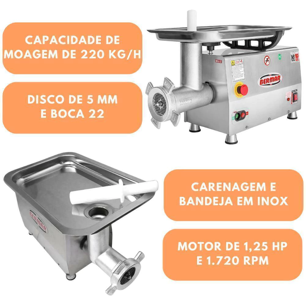 Picador Moedor De Carne Boca 22 Bm20Nr PF - Bermar