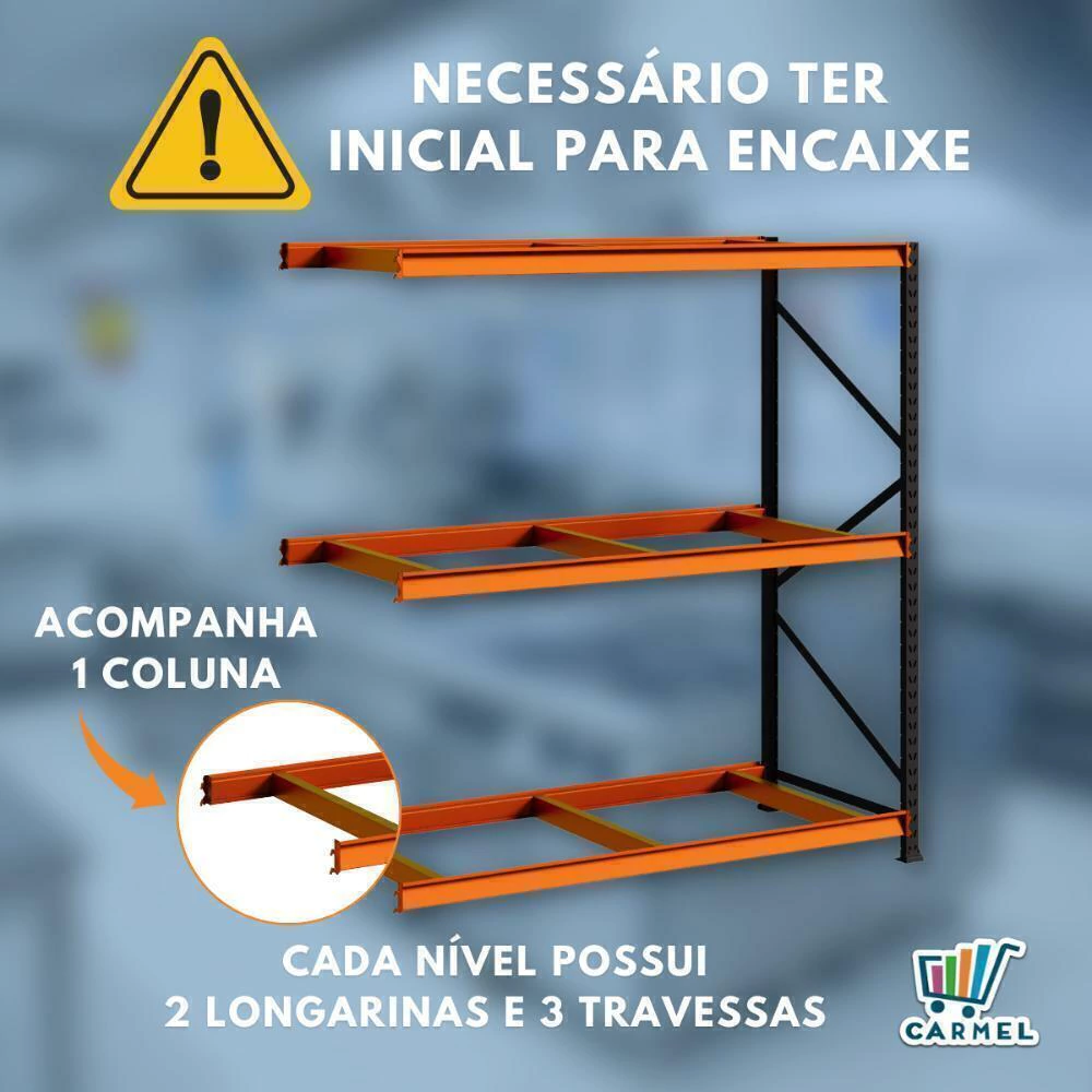 Prático e versátil, além de ser de fácil montagem. Dispensa o uso de empilhadeiras, onde as mercadorias são depositadas e retiradas manualmente dos planos. Produzido em aço resistente, com capacidade de 500 kg por nível e reforço nas laterais é indicado para depósitos, estoques e exposição, como: pet shops, oficinas, lojas de materiais de construção e mini atacarejos.