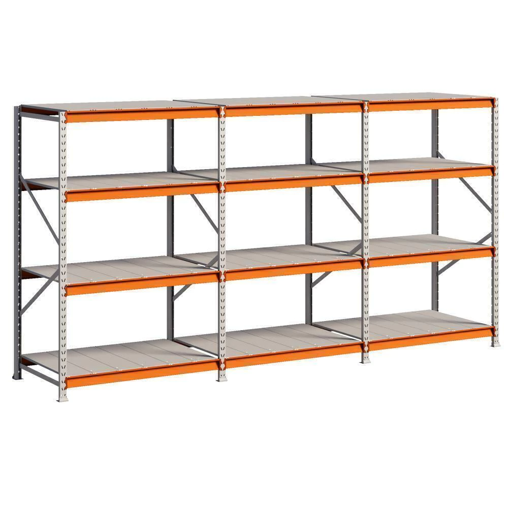 Prático e versátil, além de ser de fácil montagem. Dispensa o uso de empilhadeiras, onde as mercadorias são depositadas e retiradas manualmente dos planos. Produzido em aço resistente, com capacidade de 250kg por nível e reforço nas laterais é indicado para depósitos, estoques e exposição, como: pet shops, oficinas, lojas de materiais de construção e mini atacarejos.