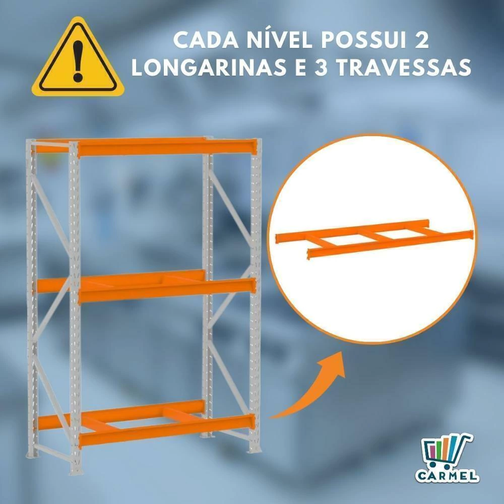 Prático e versátil, além de ser de fácil montagem. Dispensa o uso de empilhadeiras, onde as mercadorias são depositadas e retiradas manualmente dos planos. Produzido em aço resistente, com capacidade de 500kg por nível e reforço nas laterais, é indicado para depósitos, estoques e exposição, como: pet shops, oficinas, lojas de materiais de construção e mini atacarejos.