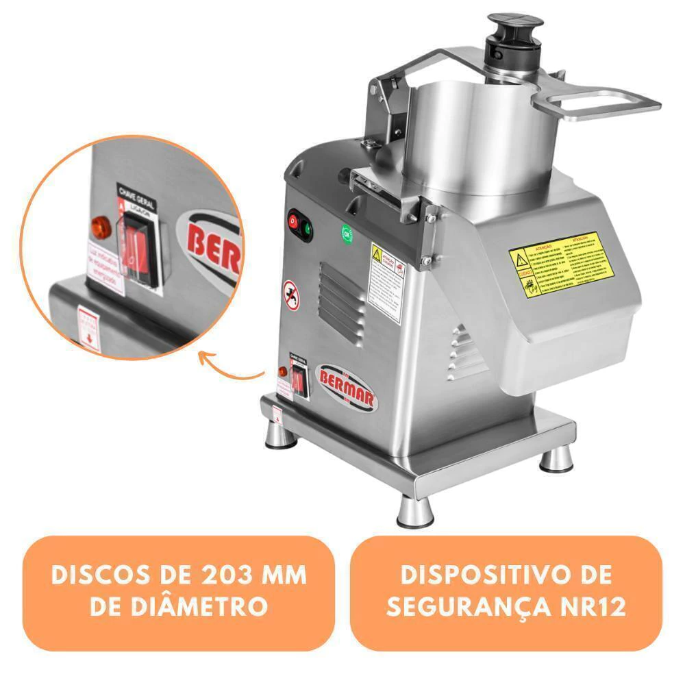 Processador BM125 Com 7 Disco Fatiador Curvo De 8 e Grade Cubo De 8MM