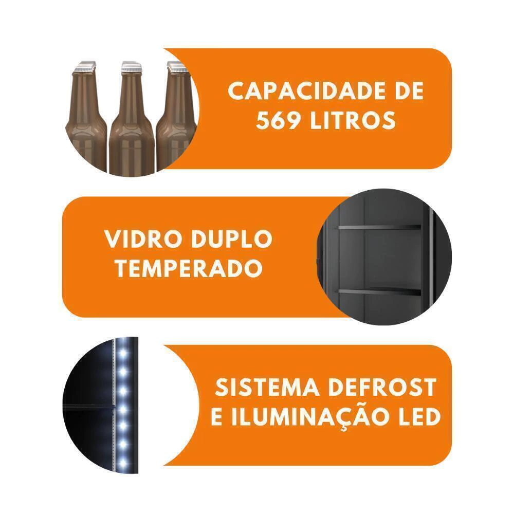 Refrigerador Vertical Porta De Vidro 569 Litros Total Black VCFM569V - Fricon