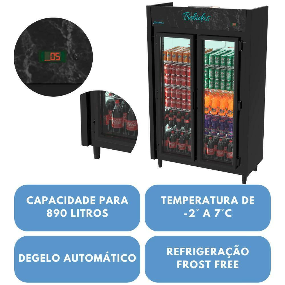 Expositor Auto Serviço 2 Portas Para Bebidas Ar Forçado - Kofisa