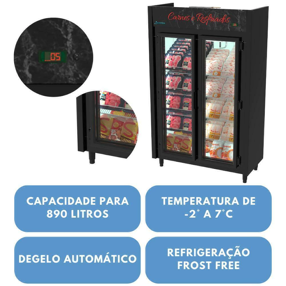 Expositor Auto Serviço 2 Portas Para Carnes E Resfriados Ar Forçado - Kofisa
