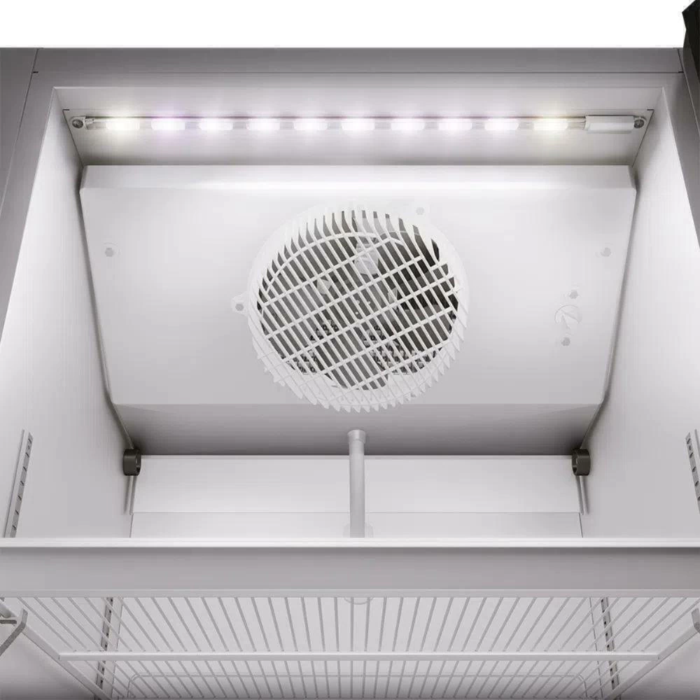Desempenho Profissional: Sistema de refrigeração com fluxo de ar contínuo. Garante resfriamento rápido e uniforme em todas as bebidas, e rápida recuperação de temperatura, mesmo após frequentes aberturas de porta.