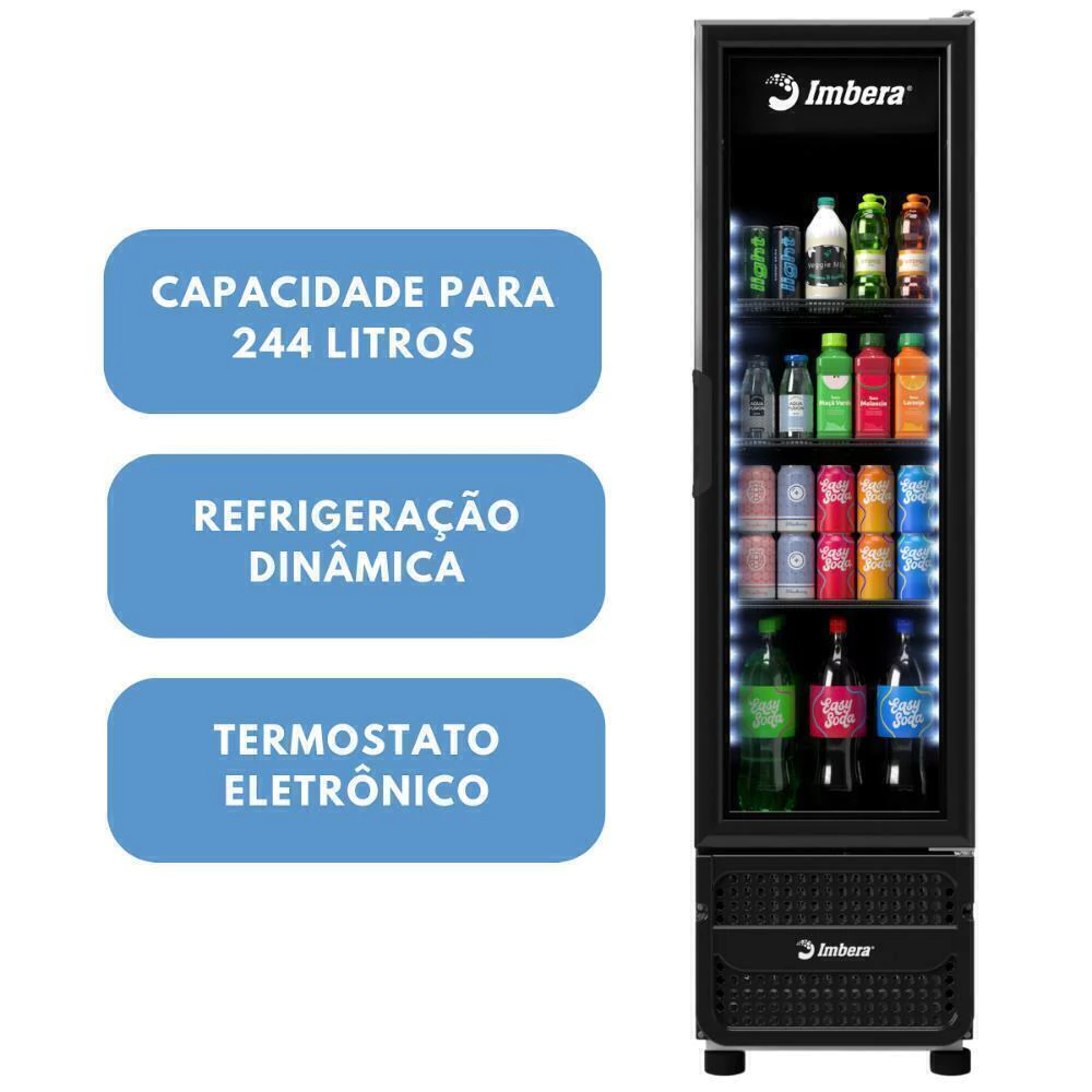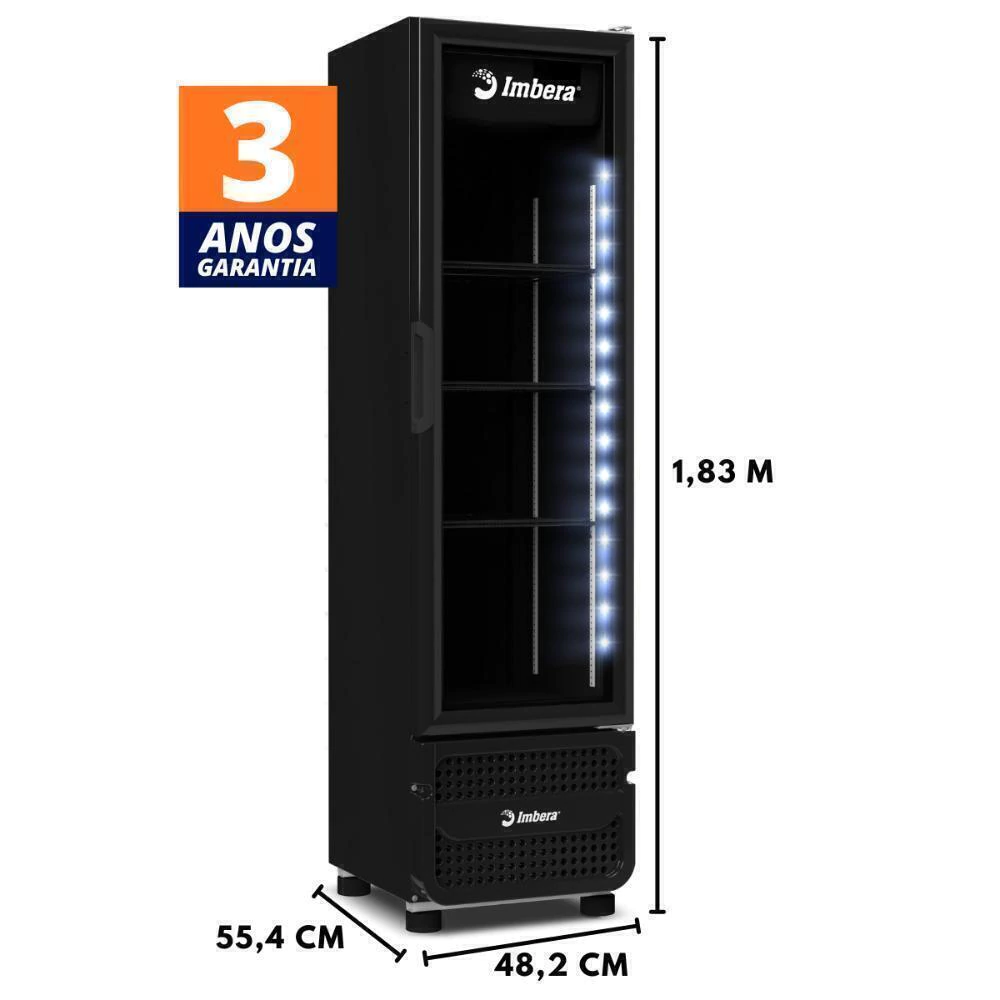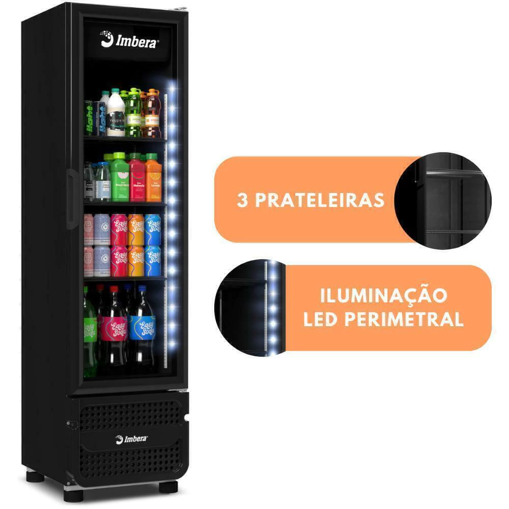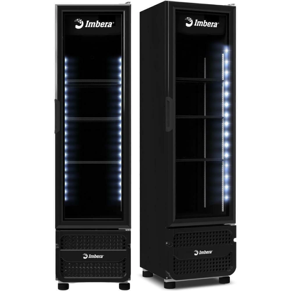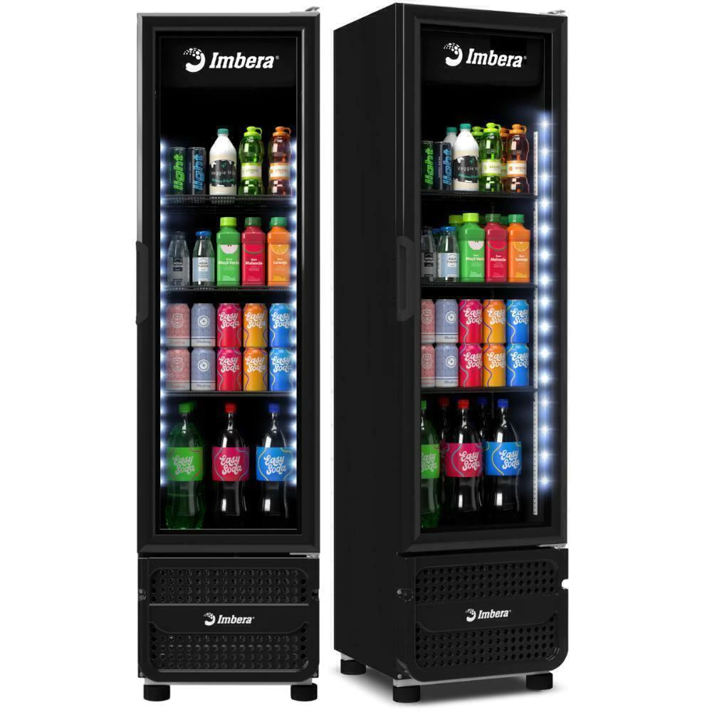 A linha de Refrigeradores Imbera oferece bebidas gelada com design compacto para você, com sistema de iluminação de led interno com baixo consumo energético, com porta de vidro temperado para melhor visualização e controle de temperatura 0 a +7°C. Acompanha 3 prateleiras para organizar os produtos, até 20% mais rápido para atingir a temperatura