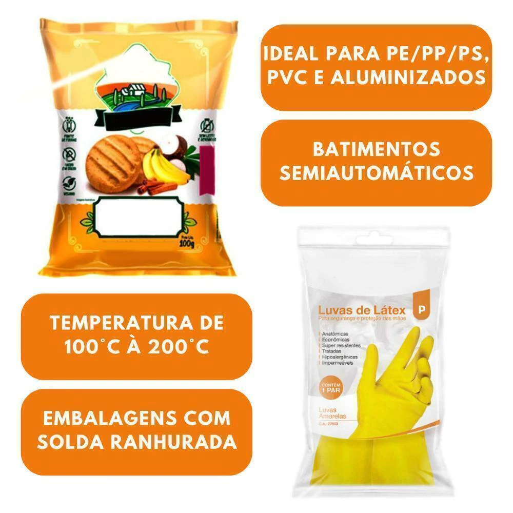 É ideal para trabalhos intensos e maiores espessuras em PE/PP/PS e aluminizados. Indicado para selagem de embalagens com solda tipo ranhurada.